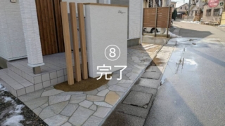 玄関前に門柱と石張りアプローチを施工しました。周辺の余分な土を掘りとり、門柱の亜鉛メッキ鉄 ...