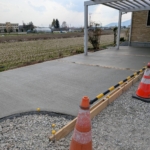 駐車場とアプローチ横に土間の型枠をよじれのないようにしっかりと組み、外周りは面取り仕上げで面木を使用しました。