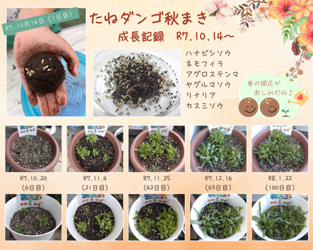 園児の皆さんと秋まきのたねダンゴ講座を行ってから100日経ちました。